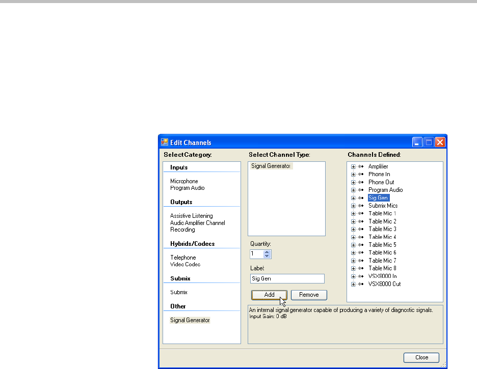 generator to the project by selecting Edit Channels and select the Signal