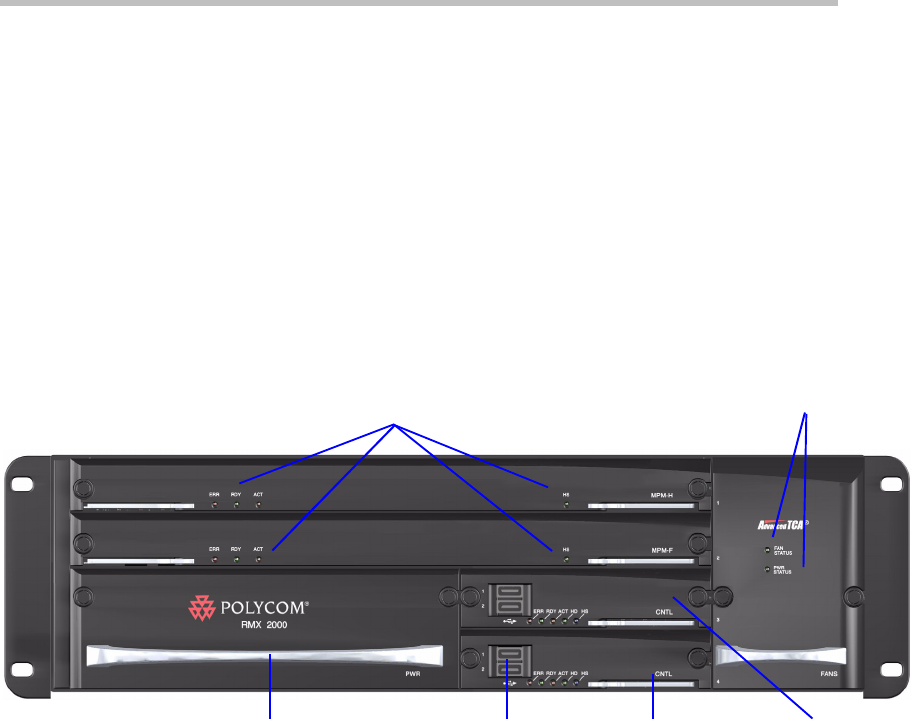 Figure 1-1 shows the front panel of the RMX 2000. The front panel